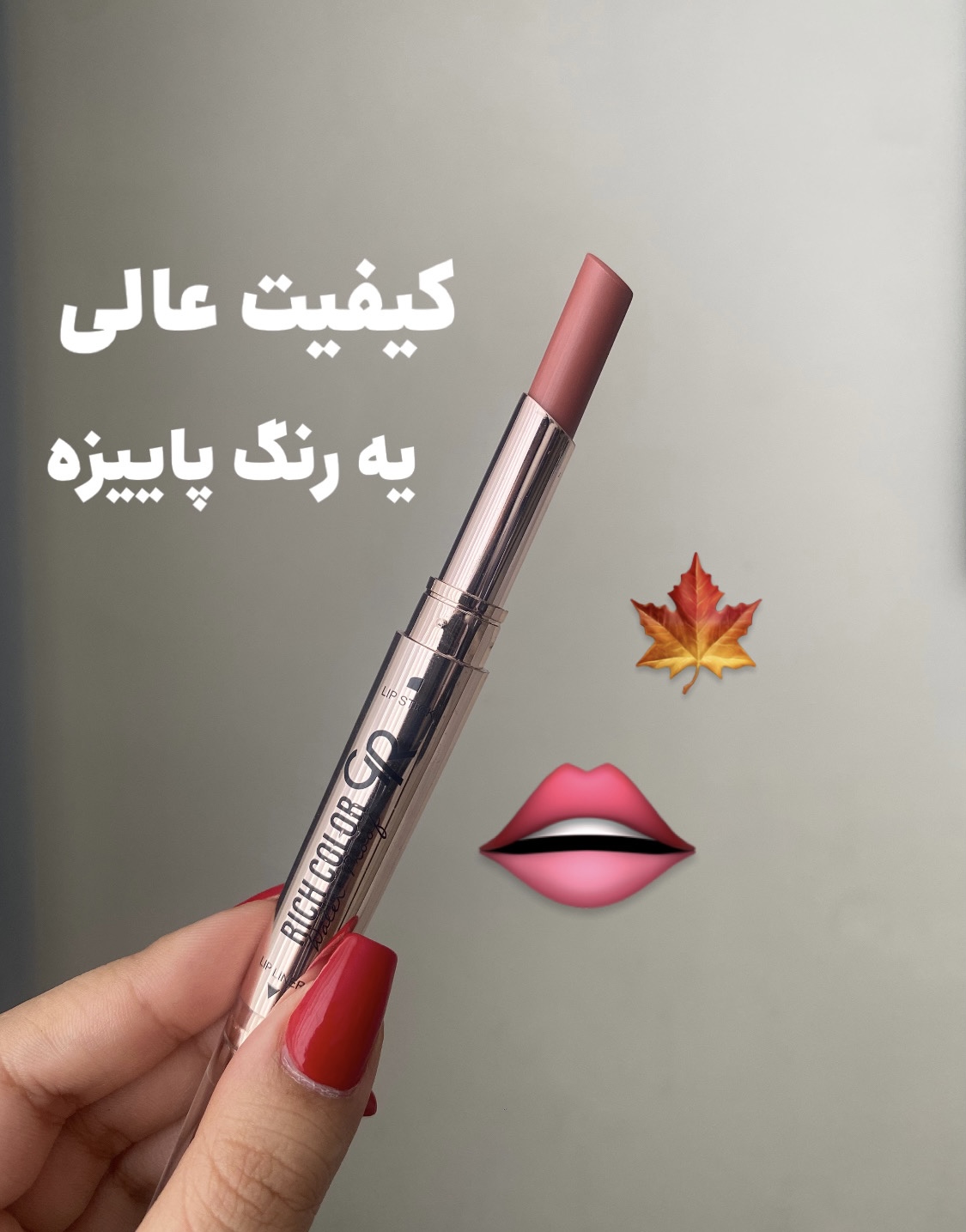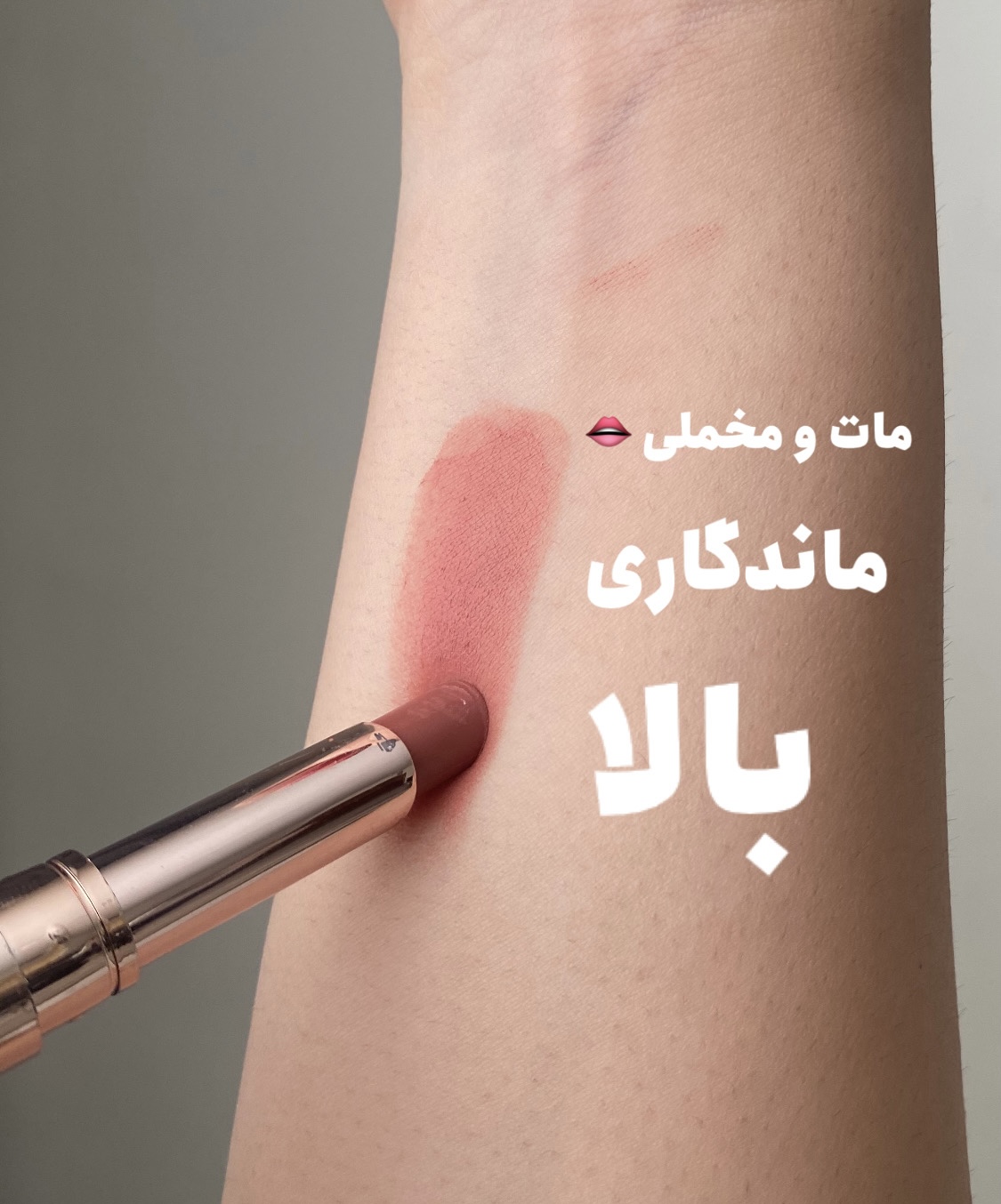 ماندگاری :زیاد ، ماته و چسبندگی نداره ، میمونه روی لب تا ساعت ها😍